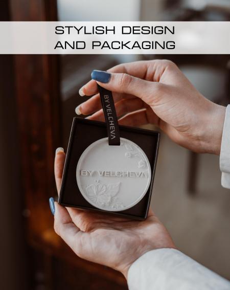 Gipsowe krążki zapachowe By Velcheva to elegancki sposób na aromatyzację małych przestrzeni. Te delikatne, ręcznie wykonywane saszetki z gipsu wypełnione są skoncentrowaną kompozycją zapachową, która stopniowo uwalnia aromat przez wiele tygodni. W zestawie znajdują się 2 ekskluzywne saszetki, idealne do garderoby, szuflad z bielizną czy jako elegancki dodatek do wieszaków.